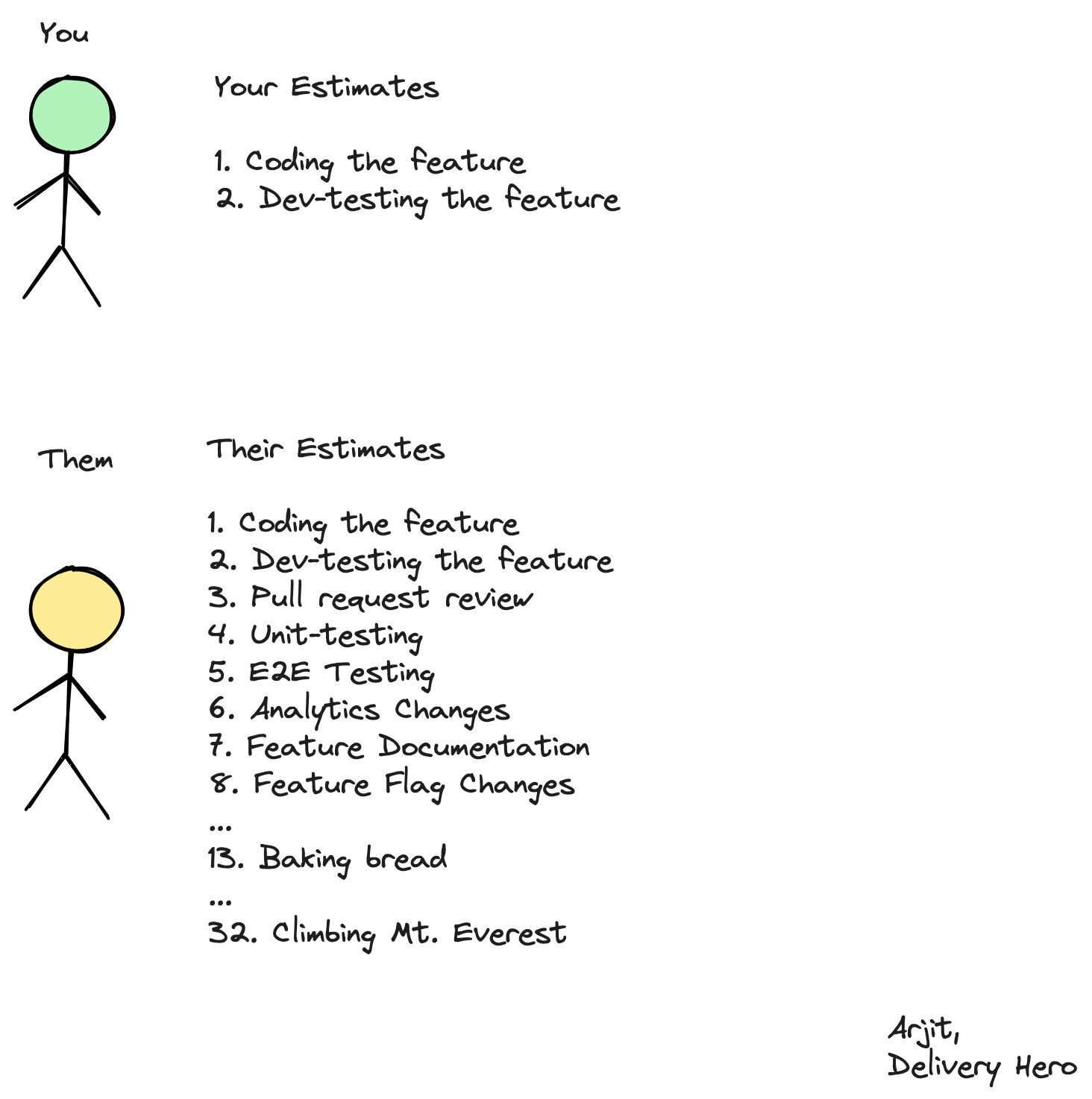 Ignoring the full-picture of tasks: Often, estimations focus solely on the core development work, neglecting documentation, unit tests, and code reviews. These tasks, although not directly contributing to the product's functionality, are vital for quality and long term success.